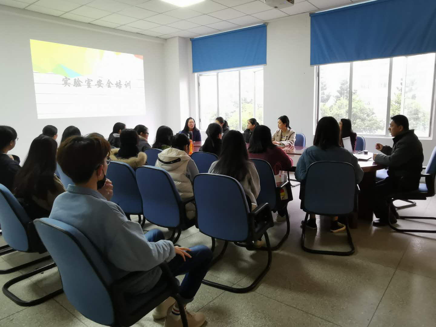 首先,李泳宁副主任以“12.26”北京交通大学爆炸事件等重大实验室安全事故为例,强调实验室安全的重要性,要求学生要增强安全意识,遵守实验室规章制度,规范实验操作。张月芬老师从化学/生物实验室特点、实验室安全事故及发生的原因、安全管理规定、实验室人员应养成的安全习惯、事故应对策略及应急处理等方面进行详细讲解,并结合日常管理工作中发现的不规范操作,较全面的普及学生们的实验室安全知识。最后,黄慧老师以通俗易懂的语言为学生们讲解了化学实验室危险化学品的管理制度、操作规范及应急事故处理,强调危险化学品分库、分类存放、取用严格记录、“双人保管、双人领取、双人使用、双把锁、双本账”的管理制度。