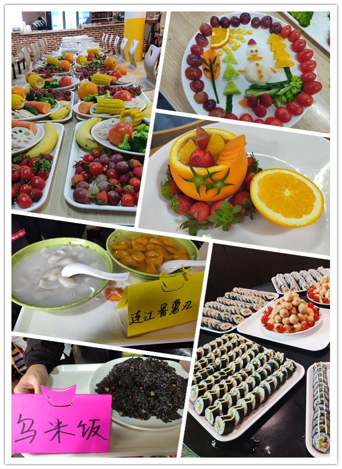 美食节分为三个部分:第一部分是由学生给嘉宾评委带来几道民族及地方特色小吃;第二部分是在现场举行了包饺子活动,邀请了老师们和同学一起包饺子,忙碌的画面让现场的气氛显的格外的温馨,更是促进了师生间的感情交流;为了缓解比赛紧张的情绪,现场还安排了学生与餐厅大厨共同表演的拉面,大厨灵活的手指伴随着面条一抽一拉实在是让人看了不禁感叹大厨的精湛手艺;比赛中场还进行了互动环节,答对有关美食文化的题目,还有一些小奖品可以领取,有的吃有的玩又有奖品,全场的气氛一下子推到高潮。师生们开开心心的吃着自己动手包的饺子听着药学系的吉他弹唱迎来了比赛的尾声。最后一部分是参赛班级自由发挥,从有限的食材中展现不同的创意水果拼盘,并由评委老师打分。比赛进行到最后,临床医学系团总支叶家涛书记致上精彩绝伦的结束语,并对本次比赛进行总结与补充。药学系舞蹈队青春靓丽的拉丁舞圆满结束了“共享美食风韵,情醉民族长廊”美食节大赛。