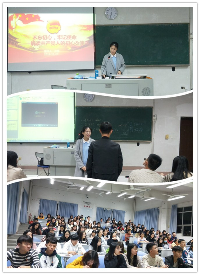 2018年11月25日,药学系于药一阶开展业余分党校第四讲,本次培训主题是解读共产党人的初心和使命,由学生党支部高施老师主讲。