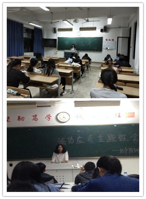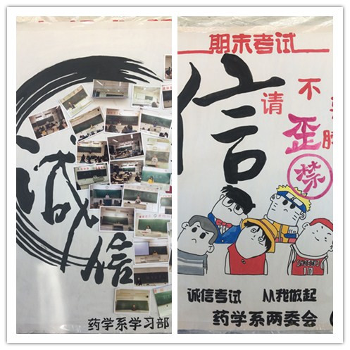 为进一步严肃考试纪律,培养同学们树立诚信应考,诚实做人的理念,弘扬中华民族的传统美德。药学系学习部组织各班级开展“诚信应考,杜绝舞弊”的主题教育活动。