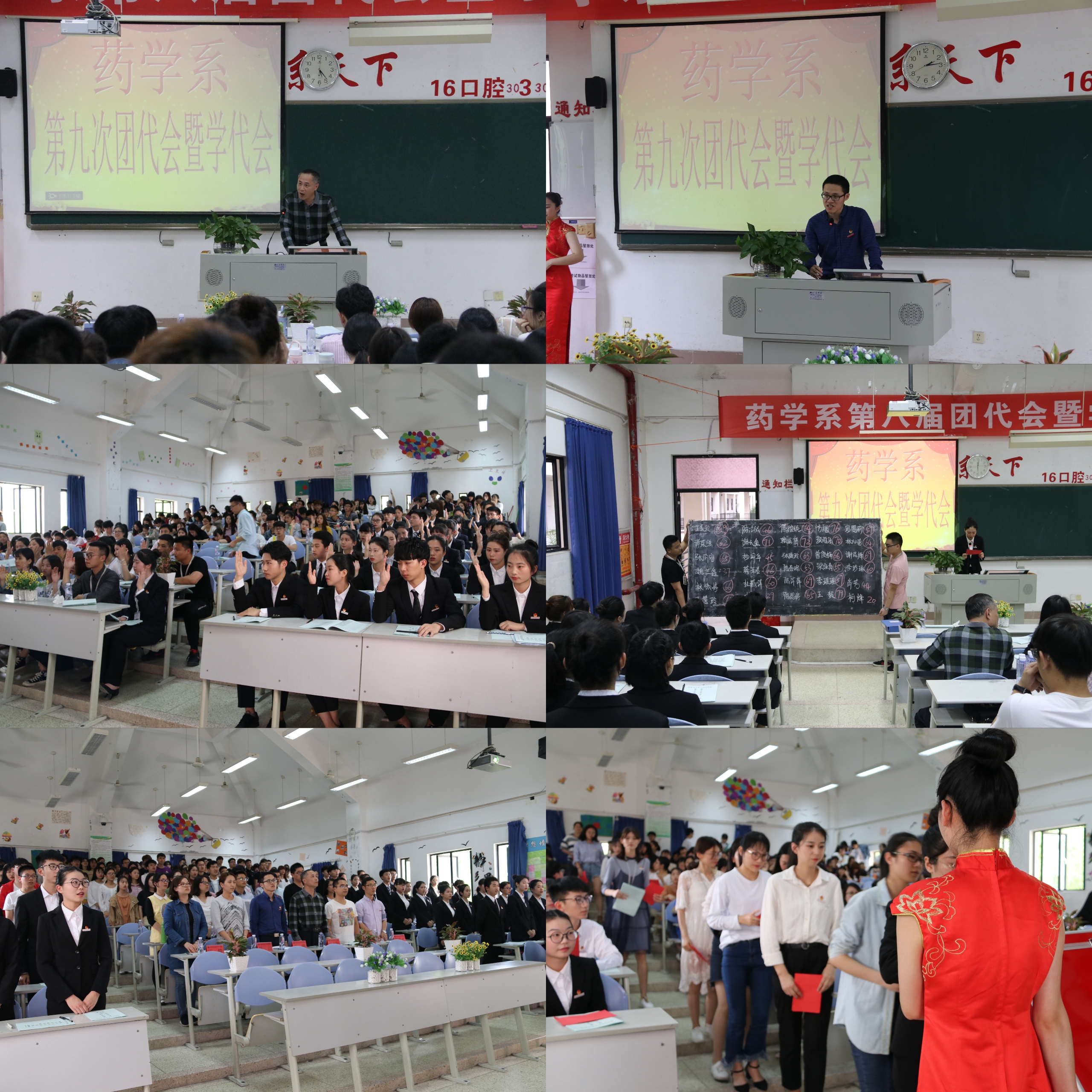 2018年4月13日,开云在线登录app入口药学系在教学楼310召开第九次团学换届选举大会。出席此次大会的领导以及老师有院团委黄曦书记、药学系党总支郑力宏书记、药学系党总支陈洁副书记、药学系团总支书记黄嵩梅老师、护理系团总支副书记林飞准老师、护理系团总支副书记张龙老师、临床医学系团总支书记叶家涛老师、临床医学系团总支副书记谢林辉老师、医学技术系团总支副书记曾庆才老师、健康管理系团总支书记邱麟老师以及药学系各位辅导员。