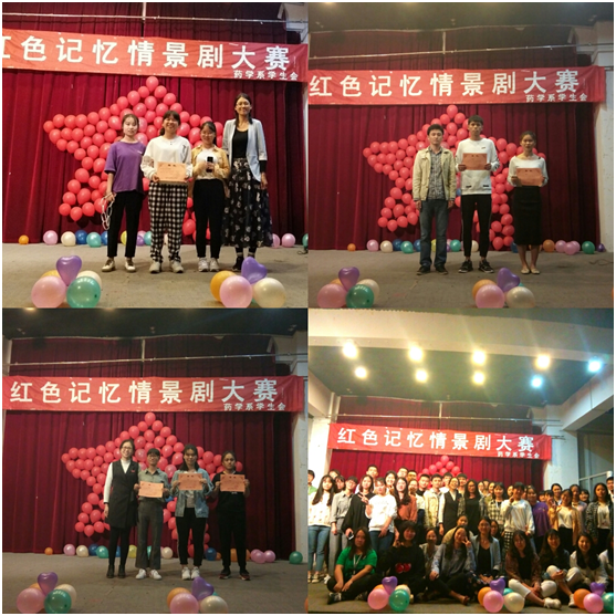 为进一步加强爱国主义教育,学习中国共产党的光荣传统,激发同学们的爱国意识,2018年4月19日晚,由药学系学生会主办,记者团、宣传部、易班承办的“红色记忆”舞台剧总决赛于明湖师生活动中心三楼隆重举行。药学系团总支副书记尹德爱老师,辅导员李宝珠老师、陈翰老师、高施老师以及两委会学生干部应邀参加。