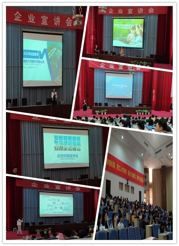 为了让2016级实习生更多地了解实习单位情况,也为了让企业获得更多优质的实习生资源,药学系于4月24日下午在学术厅召开了2016级实习生企业宣讲会。福州伟什医药科技有限公司、鹭燕医药股份有限公司、福建康佰家大药房连锁有限公司、福州宜又佳医药连锁有限公司、福建九州通医药有限公司、福建国大药房连锁有限公司等六家公司及2016级400多位学生参加了此次的企业宣讲会。