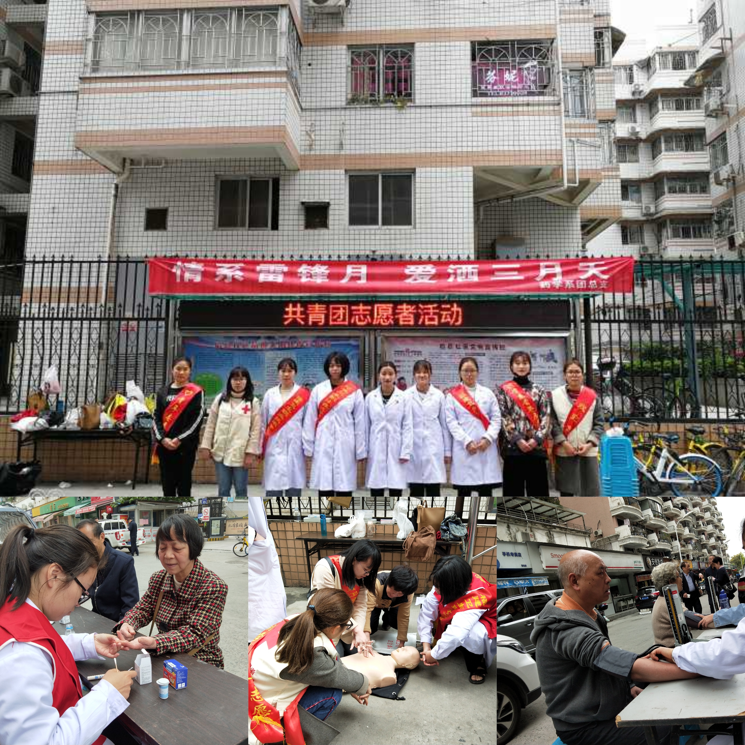 雷锋精神处处有,医者爱心时时在。为进一步推动系部“弘扬雷锋精神,志愿服务暖三月”活动,提高社区居民的健康知识水平和健康保护意识,3月17日药学系团总支携手院红十字会在鼓西街道后县社区开展主题为“情系雷锋月,爱洒三月天”的义诊活动。