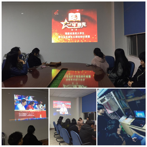 《一"马"当先》知识竞赛着眼于以喜闻乐见的方式激发大学生学理论学马列的兴趣和热情,引导当代青年学生坚定“四个自信”,努力成为中国特色社会主义事业的合格建设者和可靠接班人。在观看的过程中,同学们随视频进程参与答题,互相探讨马克思主义理论知识,大家学习热情逐渐高涨,观看结束后仍意犹未尽。