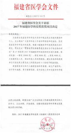 我系“伏立诺他原料及其胶囊剂的开发”项目喜获2017年福建省医学科技奖三等奖