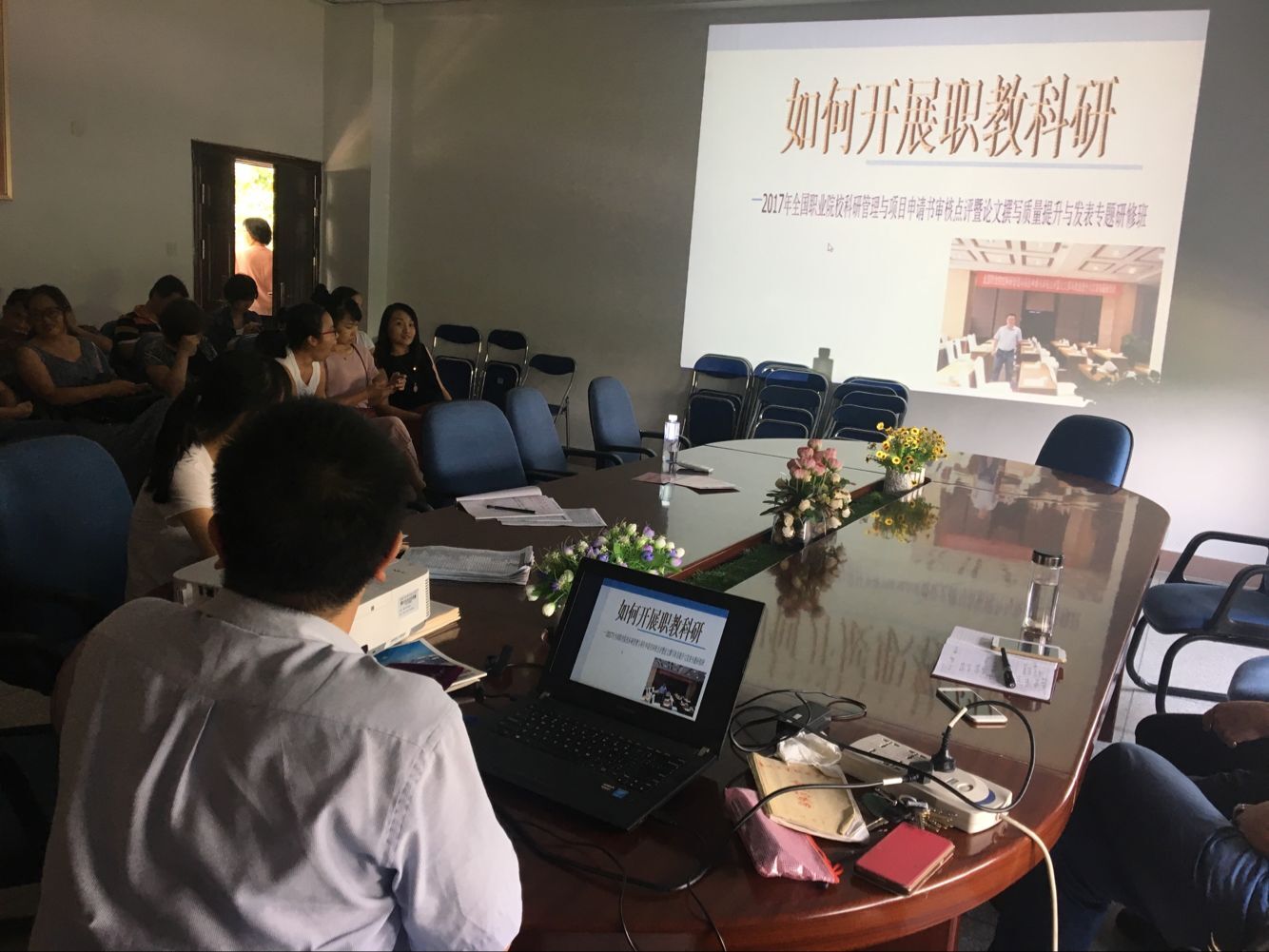 会上,邓元荣、何舒澜、王燕、林伟铃、陈翰等五位老师分享了分别参加《2017年全国职业院校科研管理与项目申请书审核点评暨论文撰写质量提升与发表专题研修班》、 《全国创新创业教育整体教学解决方案骨干教师高级研修班》、《全国职业院校翻转课堂微课教学设计开发应用及信息化教学模式创新专题培训班》、《全国职业院校品牌、特色、重点专业和实训基地建设务实操作研修班》、《第八期全国职业院校学生工作者专业素质提升高级研修班》等培训会,汇报了自己学习的收获及所感、所悟,尤其是对照自己的工作进行了深刻反思,同时在提高教学和科研质量方面提出了许多建设性的建议。