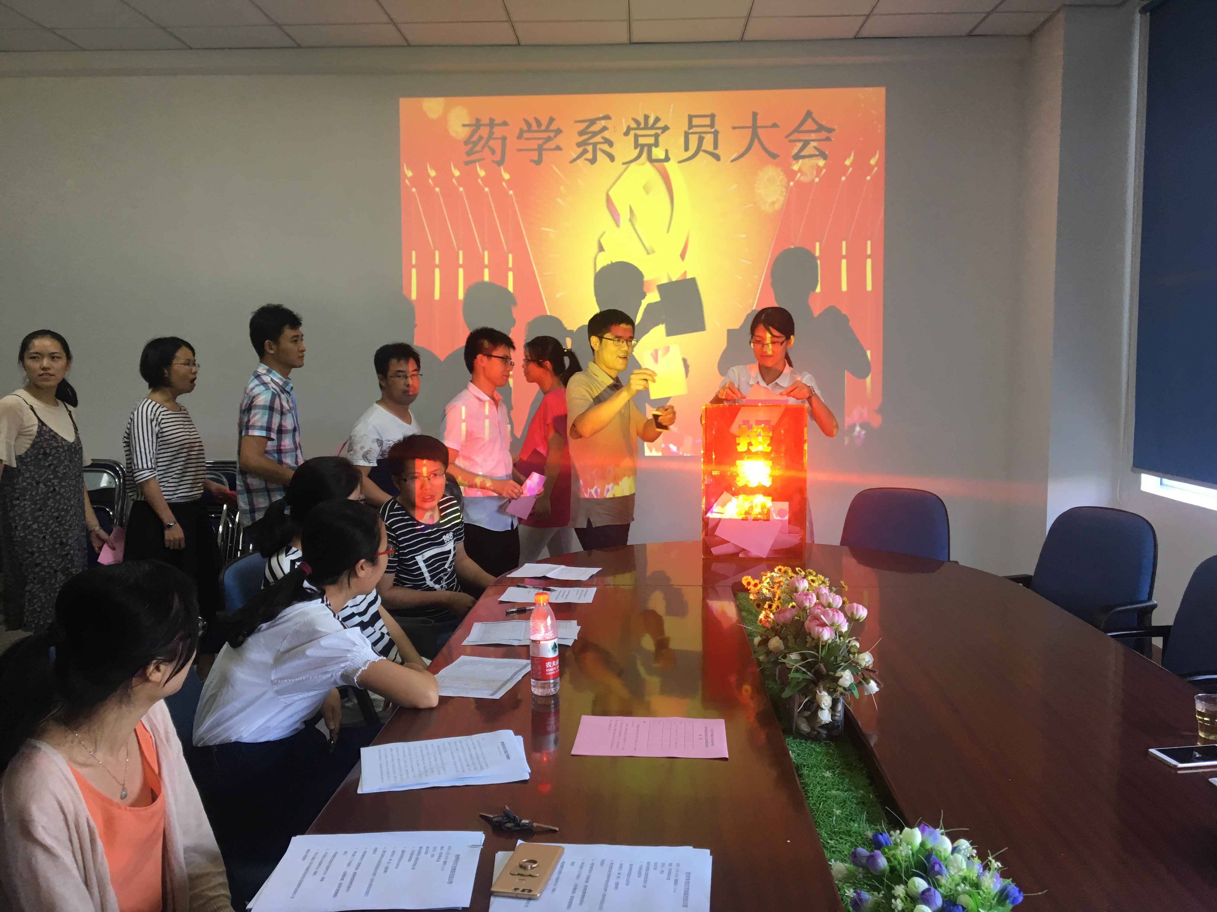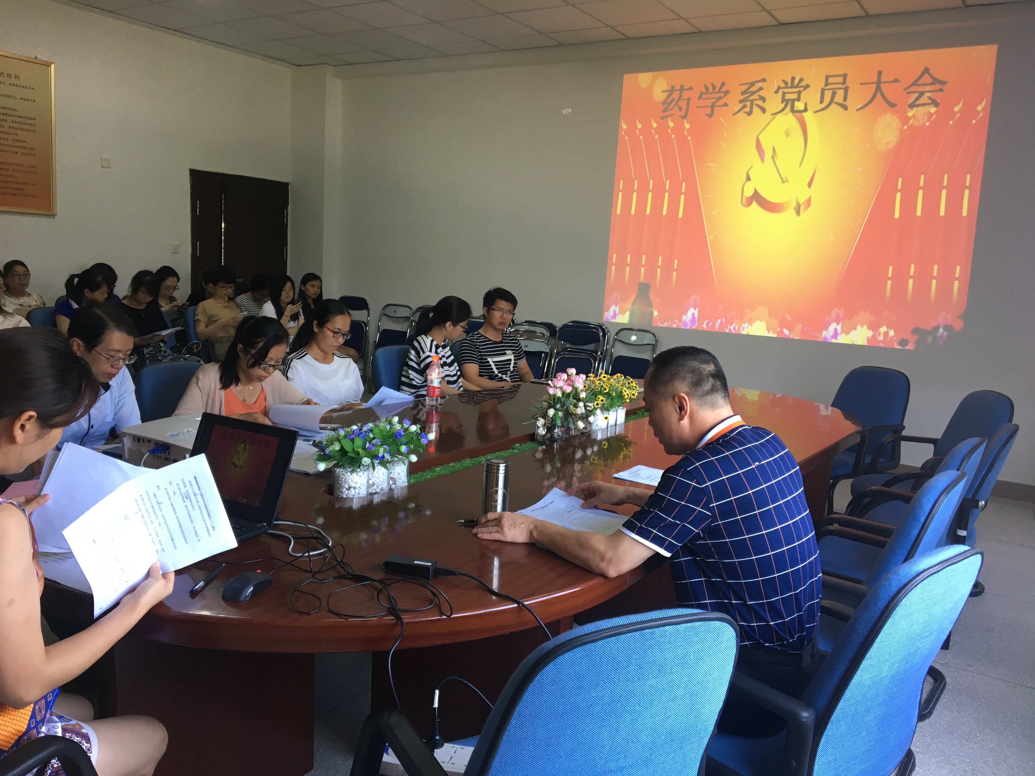 ,药学系党总支换届选举党员大会在系会议室召开。党工部吴华副部长、系党总支郑力宏书记以及全系党员同志参加了大会。会议由系党总支副书记陈洁主持。