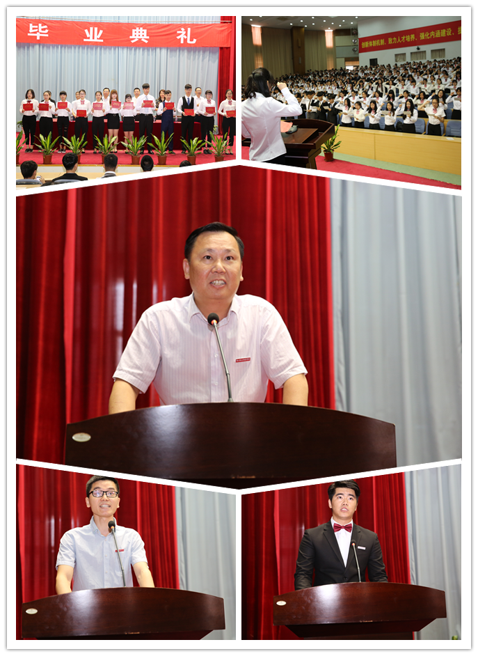 最后,院党委曾武祈书记代表学院做重要讲话,向学有所成,即将告别母校,踏上新的人生征程的2017届毕业生表示最热烈的祝贺,向为学生成才而付出辛勤劳动的老师表达诚挚谢意。同时对全体毕业生提出以下三点要求:一是转换角色,找准定位,树立志向。二是勤于学习,勇于实践,努力成才。三是牢记校训,践行誓言,建功立业。希望同学们常关心学院的发展,衷心祝愿毕业生在新的人生路上再创佳绩。