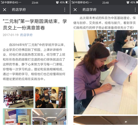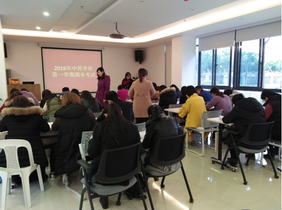 1月18日是16级“厦门美商”中药学二元制班级的期末考试日,共安排《保健与刮痧》、《艾灸技术》、《中医基础理论》、《经络与腧穴》四门课程考试。厦门美商企业高度重视二元制班级的期末考试安排工作。考场安排在美商海沧药厂的办公楼,美商公司的企业班主任胡老师组织考务工作,28名“厦门美商”中药学二元制班级学生全部到场。药店管理学院院长潘虹亲临考场巡视,学院教务处的程璐老师和药学系教学办潘雪丰老师、康婷婷教学秘书进行了全程监考,保证了“厦门美商”中药学二元制班级期末考试的井然进行。药店管理学院的药店学府微信公众号并做了报道。