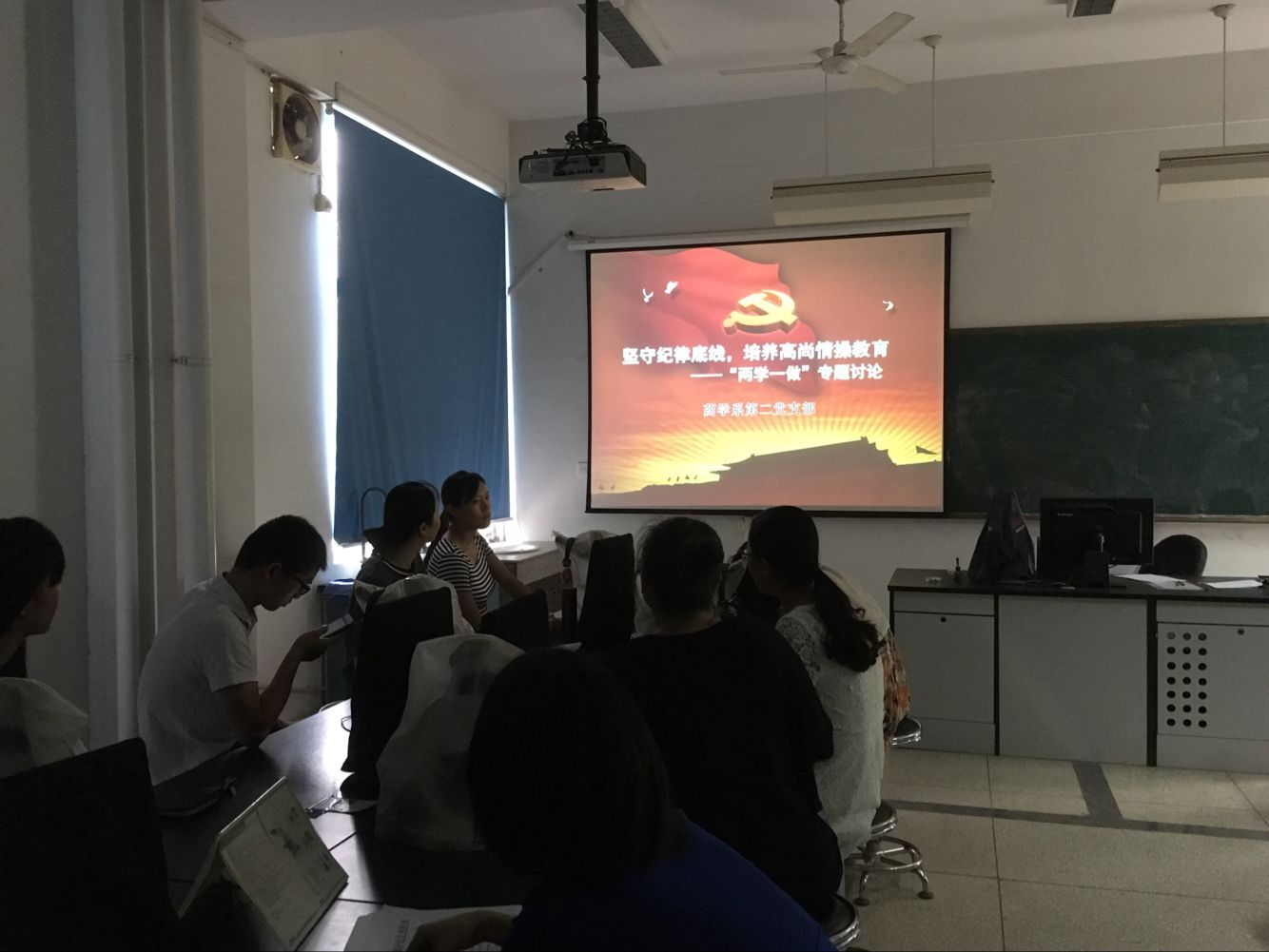 会后,大家纷纷表示,作为党员教师,要在各自的岗位上,始终以习近平总书记重要讲话精神来引导、鞭策自己,坚定理想信念,坚持根本宗旨,明确方向、知行合一,勇于担当、做一名合格的党员教师。