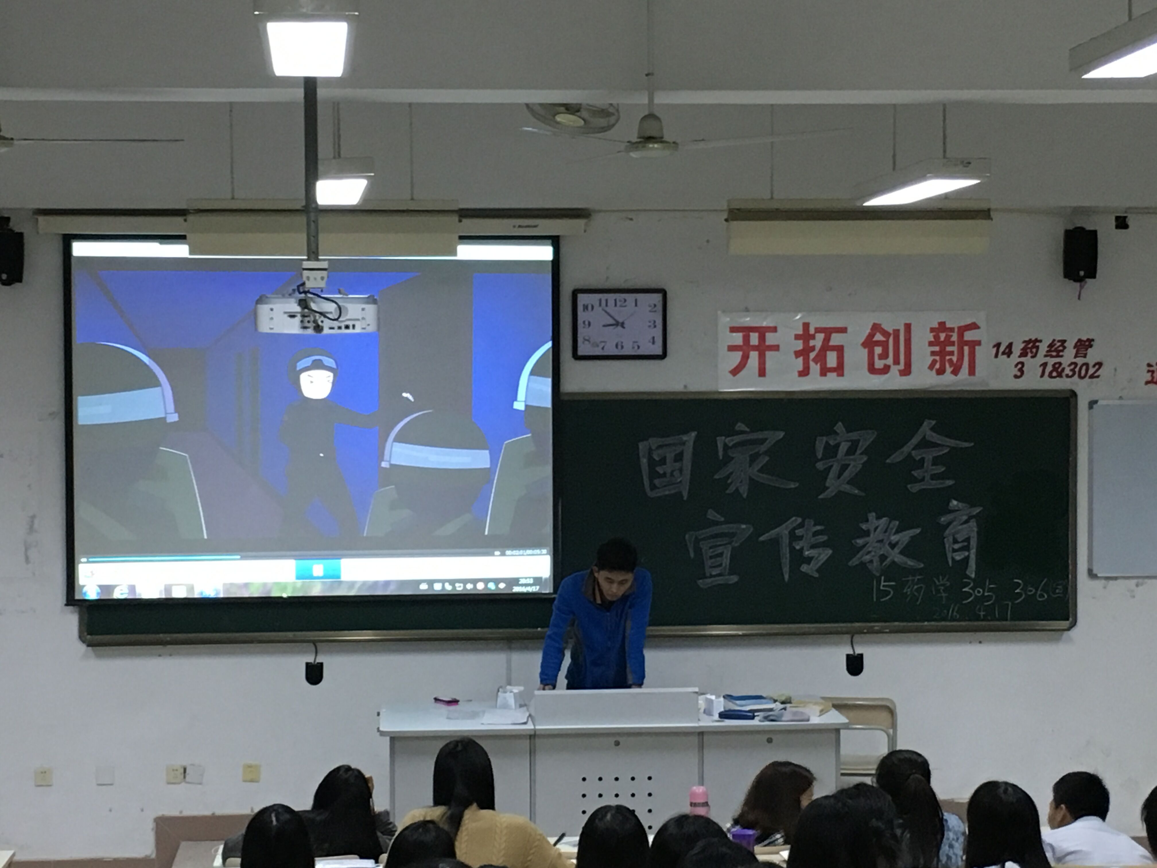 4月19日下午,苏爱华书记带领全体教职工学习了《中华人民共和国国家安全法》、《中华人民共和国反间谍法》、《福建省国家安全工作若干规定》等文件。并对三个文件的背景、法律总则、公民和组织的义务和权利、法律责任及附则等多个方面进行了认真地学习,对其中的重点内容进行了逐条讲解。之后,组织全体教职工观看动漫视频《反间谍风云》、公益广告《中华人民共和国反间谍法》和微电影《微信陷阱》;4月17日晚上,药学系各班级召开以“国家安全人人有责”为主题的主题班会,并通过形式多样的活动向同学们讲解《中华人民共和国国家安全法》、《中华人民共和国反间谍法》等法律法规,要求同学们向亲朋好友宣传相关知识,呼吁大家一起坚决与破坏国家安全的行为作斗争。