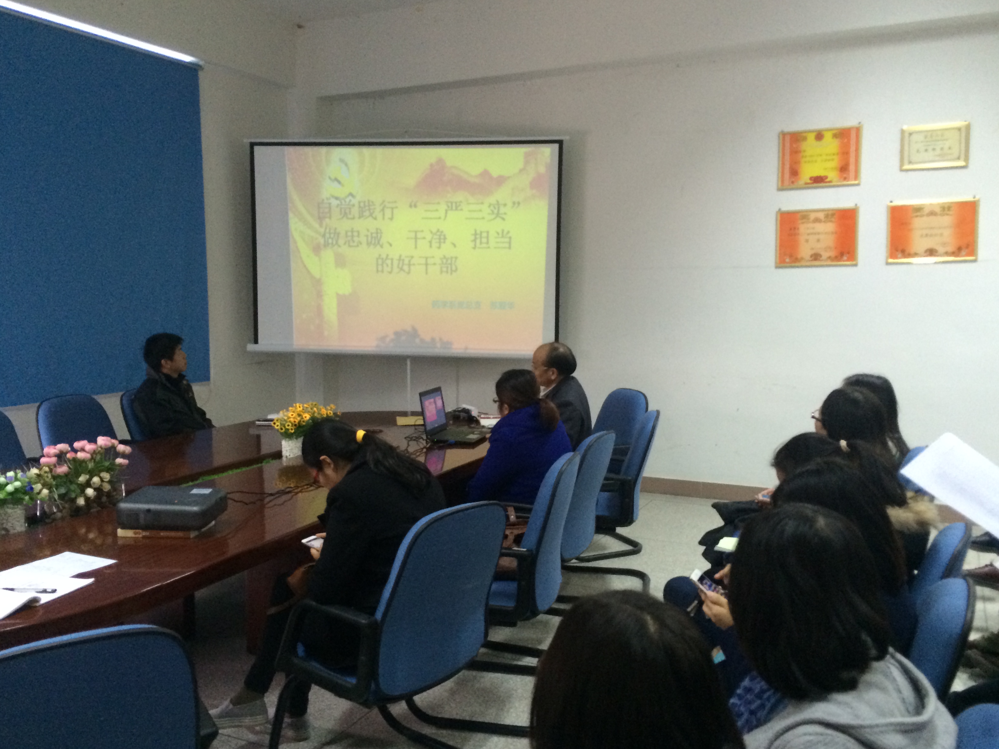 苏爱华书记对“三严三实”的丰富内涵及如何自觉践行“三严三实”的具体要求进行详细解读。并结合“三严三实”的典型违规案例,指出了在党员干部中出现的一些“不严不实”的现象及危害,要求广大党员干部对照“三严三实”要求,结合自己工作实际,认真开展批评和自我批评,时刻不忘“严”和“实”,发扬党员的先锋模范作用,积极为学院和系部发展做贡献。
