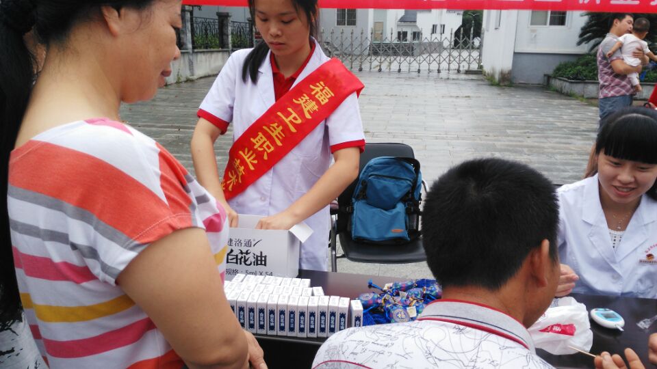 义诊持续了大概三个小时,为100多名村民进行了血压、血糖的常规检查,发放了200盒白花油、120个中药香囊、100份惠农小报及100份常见疾病预防小报。在整个义诊活动过程中,队员们以他们认真负责的态度向村民们展示了我院“业精德诚”的校训精神。