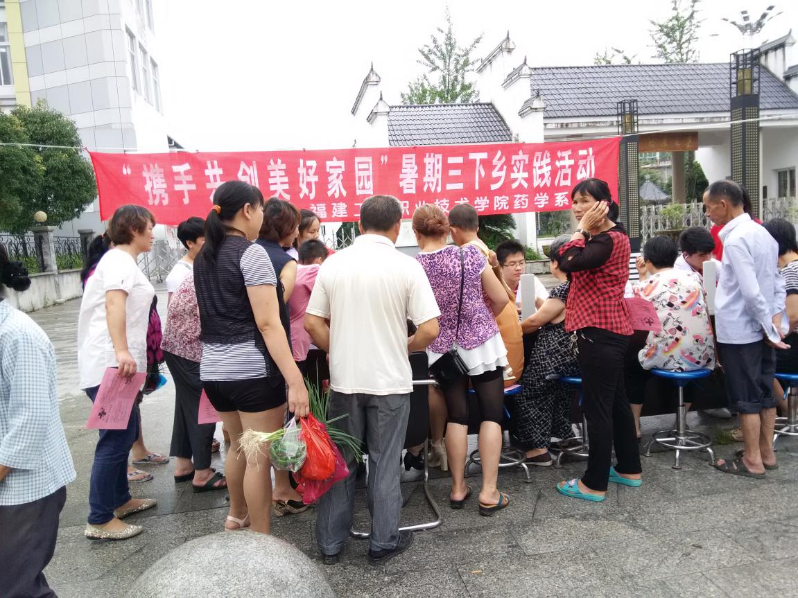 7月3日清晨,在当地团委工作人员的带领下, 开云在线登录app入口药学系“炫药青春”服务队的志愿者们针对当地农民的义诊活动在黄坑镇镇中心嘉禾广场拉开了序幕。本次义诊主要是为建阳市黄坑镇的乡民进行血压测量、血糖常规检查、发放中药香囊、惠农小报、常见疾病预防小报,以及由黄氏药业赞助的白花油等。