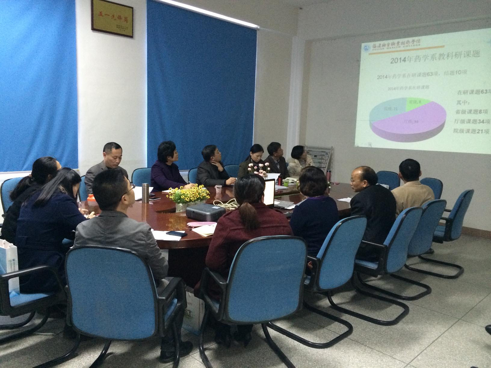 药学系主任倪峰教授汇报了药学系2014年教学、科研成果。院领导和各处室负责人听取了教师们关于专业建设、师资建设、教学管理、学生管理、科研工作、人才培养等方面的工作思路、意见和建议。各职能部门负责人对就教师们讨论中提出的问题和疑问进行了现场解答,对有一定难度的问题,座谈会后相关部门将会共同探讨解决。