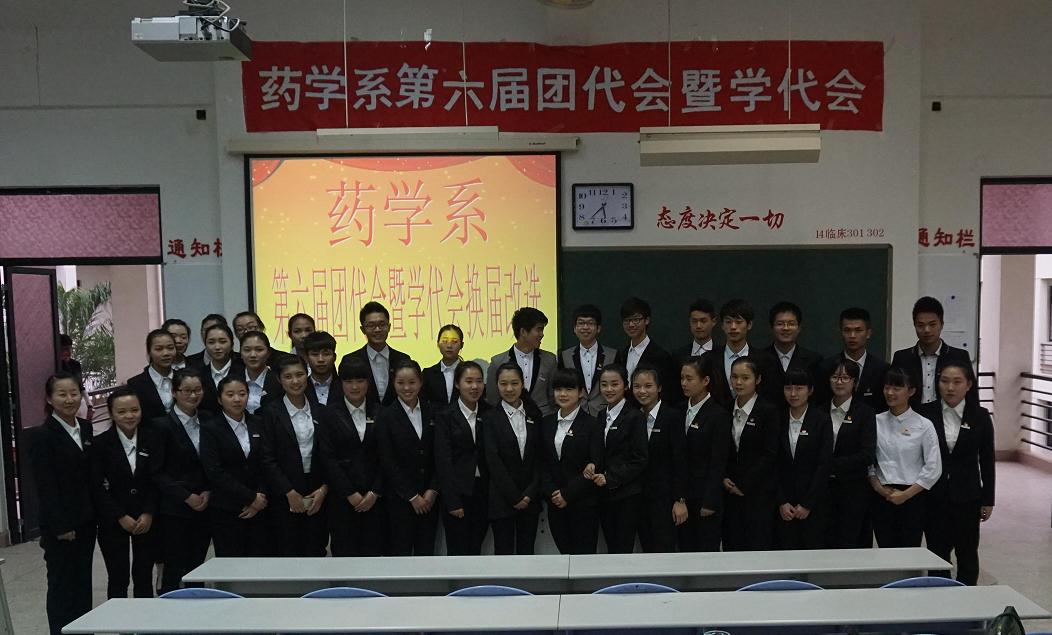 2015年4月7日下午,药学系第六届团代会暨学代会在教学楼310教室召开。院领导魏立娜副院长、学工处叶海处长、院团委宋维书记、药学系党总支苏爱华书记、药学系党总支林颖峰副书记、药学系辅导员李宝珠老师、胡丹老师、黄嵩梅老师,各兄弟系部团总支学生会嘉宾以及160多名团、学代会代表出席本次大会。