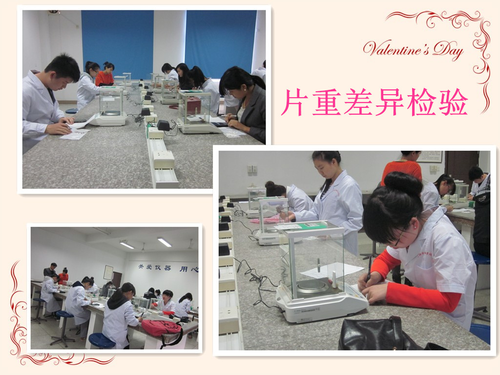 4月8日下午,药学系实践部于药学系分析天平实验室举行片重差异检验比赛。比赛分两组进行,同学们按规定称量方法测定每片药品的重量与平均片重之间的差异。唐小峦老师在旁监督学生们的操作过程,学生们无不小心翼翼,认真专心。12药学301李毅斌同学获得第一名,此次比赛,不仅巩固了学生们对化学知识的理解,更为对天平称量感兴趣的学生们提供了发展的平台。