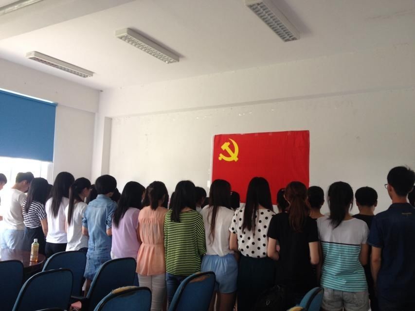 2014年6月30日上午8:30,“药学系新党员入党宣誓仪式”在药学系会议室隆重举行。参加此次活动的有药学系党总支书记苏爱华,副书记林颖峰,系各党支部书记和全体参加新党员入党宣誓的温辉辉等44名学生。