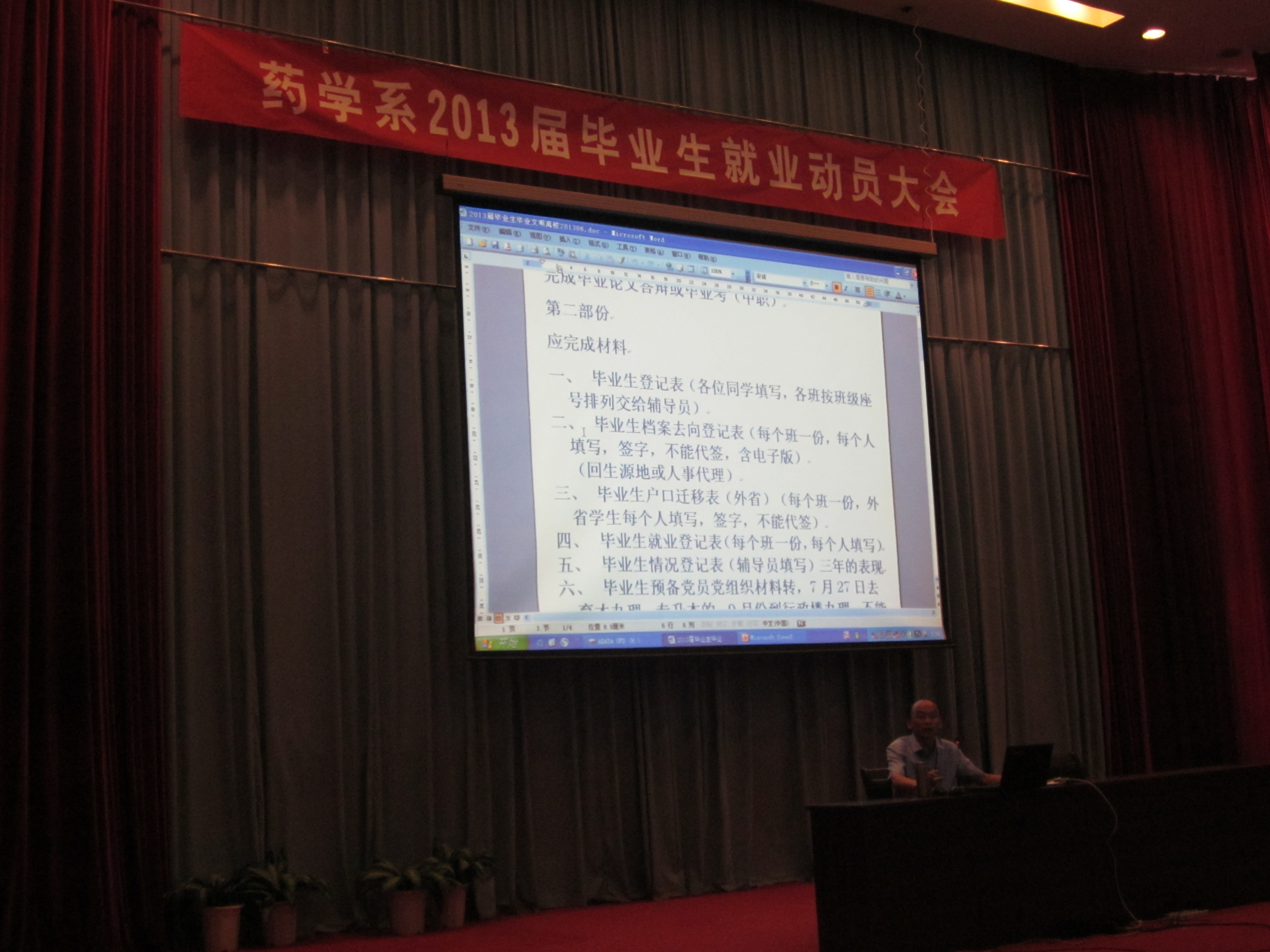 2013年6月24日上午8点30分,药学系2013届毕业生就业动员大会在学术厅召开。系部党总支副书记苏爱华老师、系部的专职班主任、辅导员及2013届拟毕业的427名同学参加了此次会议。
