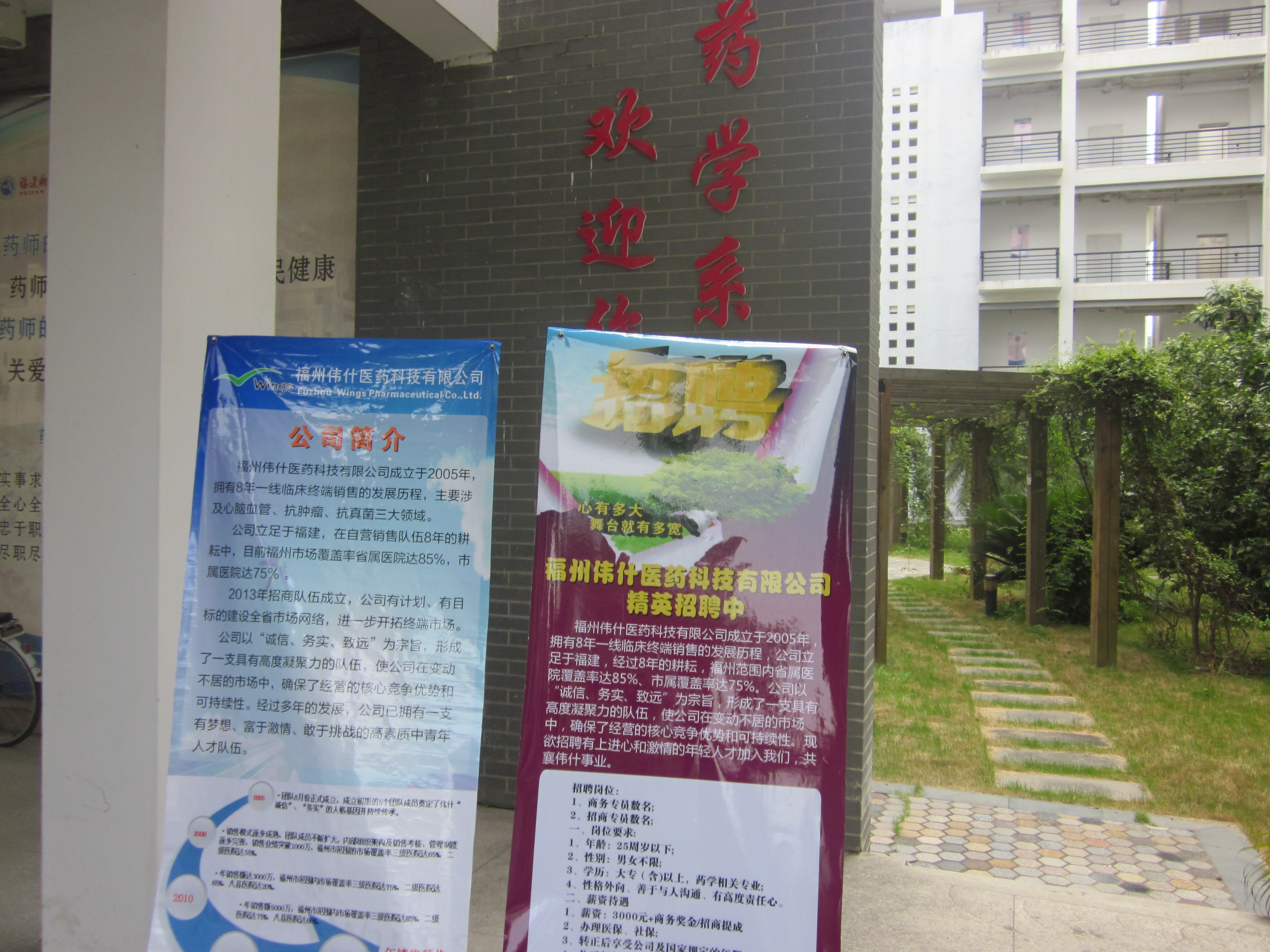 2013年6月26日中午,福州伟什医药科技有限公司来到我系药一阶梯举办了专场招聘会。
