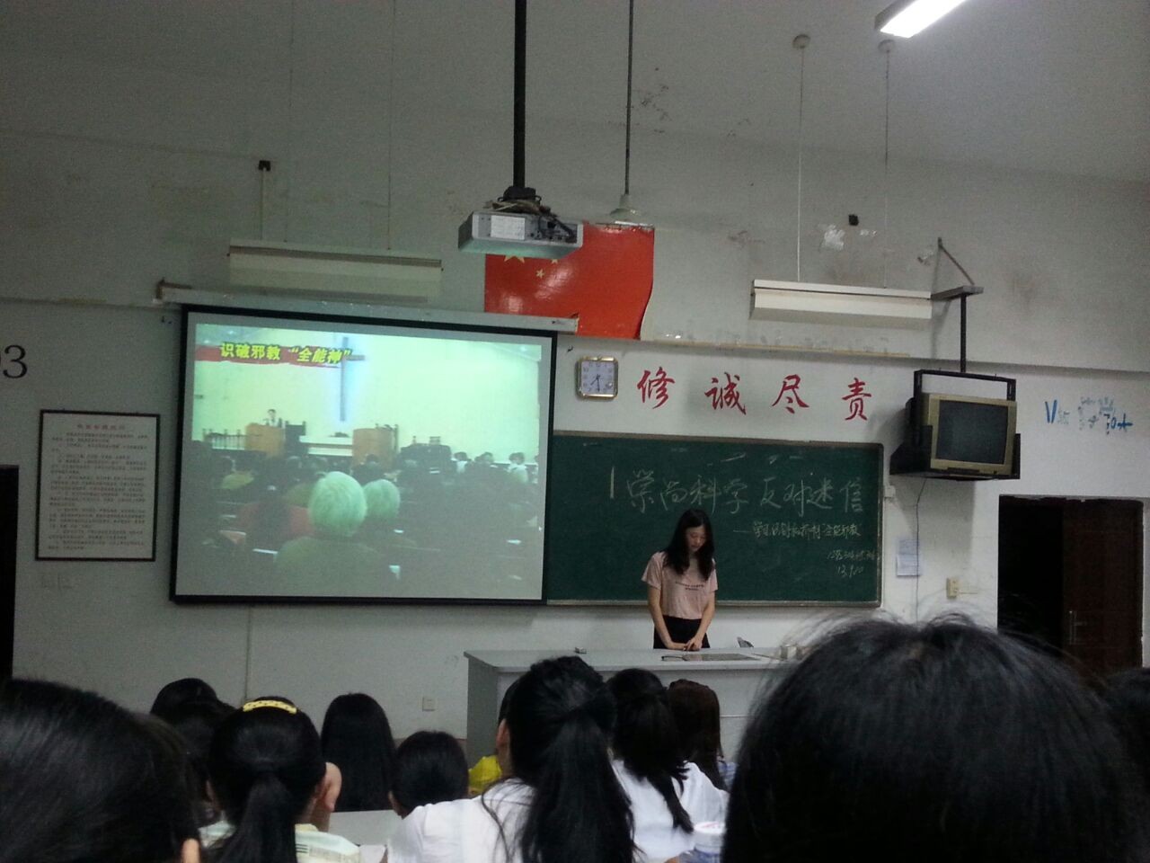 此次主题班会主要抓住“世界末日”谣言不攻自破的有利时机,利用电视、网络等宣传手段,告知同学们“全能神”邪教组织的真面目,讲明“全能神”与基督教方面的区别,揭穿“全能神”骗人“入教”的手法和伎俩,宣传如何识别和防范“全能神”等内容,引导同学们树立科学意识,自觉抵制“全能神”邪教组织的侵蚀。辅导员也在会上要求各班团干部要保持清醒头脑,带头学习识别抵制“全能神”邪教组织,并在班级中进行广泛宣传,进一步形成全班反对邪教的良好氛围。