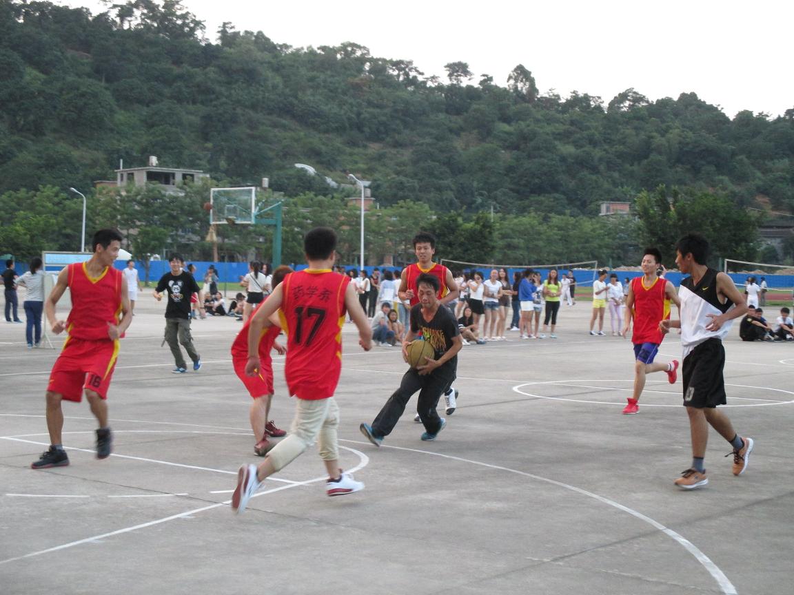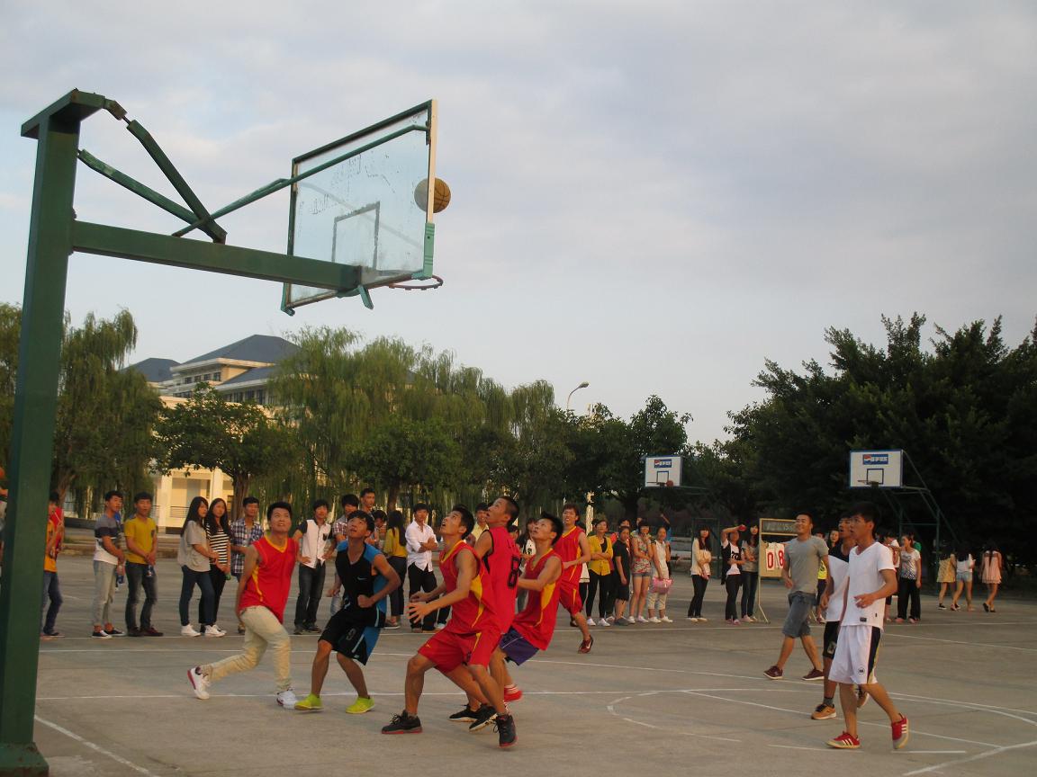 比赛开始,双方队员斗志昂扬。老生娴熟的技术和默契十足的配合赢得观众声声喝彩。新生也不甘落后,奋起直追,比分不相上下,难分难舍。在双方实力相当时,比赛进入白热化阶段。虽然已有初秋的阵阵凉意,但是现场气氛持续高涨。场外是阵阵的呐喊助威声,场内是如雨下的汗水,这是一场激烈的对战,最终,一个完美的进球结束了此次比赛。老生以1:0拉开与新生的差距,最后比分70:60,老生获得胜利。