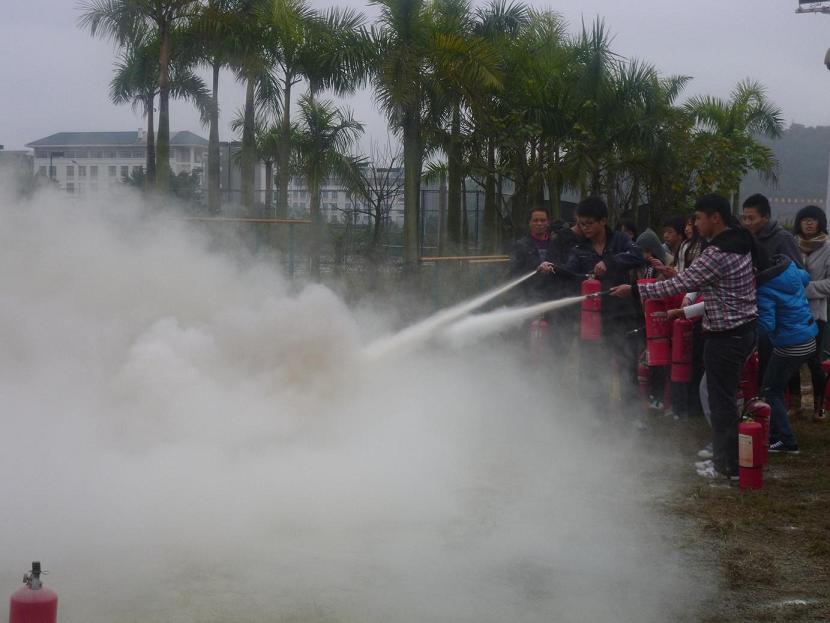 此次消防演练取得了园满的成功,本次活动让我系12级新生们熟练的掌握了灭火器的使用方法。