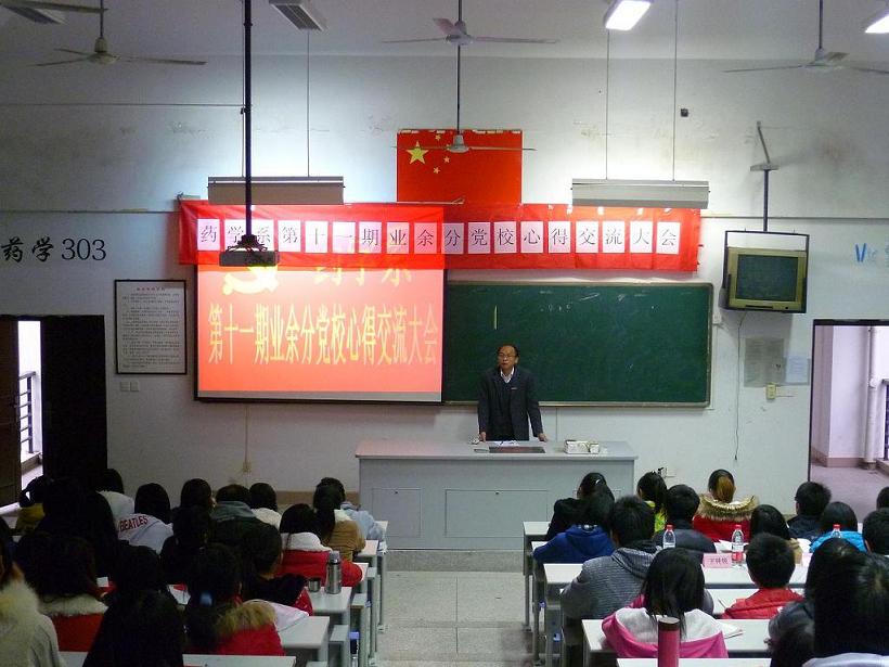 药学系第十一期业余分党校心得交流会于12月12日下午在药二阶举行,系党总支苏爱华副书记、系团总支书记王钝锐老师出席了本次会议。