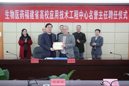3月4日下午,生物医药福建省高校应用技术工程中心聘请福州大学陈国南教授担任工程中心名誉主任聘任仪式在行政楼4楼会议室隆重举行。林春明院长、陈雄副书记、廖伟坚副院长、人事处吴华老师、药学系主任倪峰老师、副主任肖健老师参加了聘任仪式。