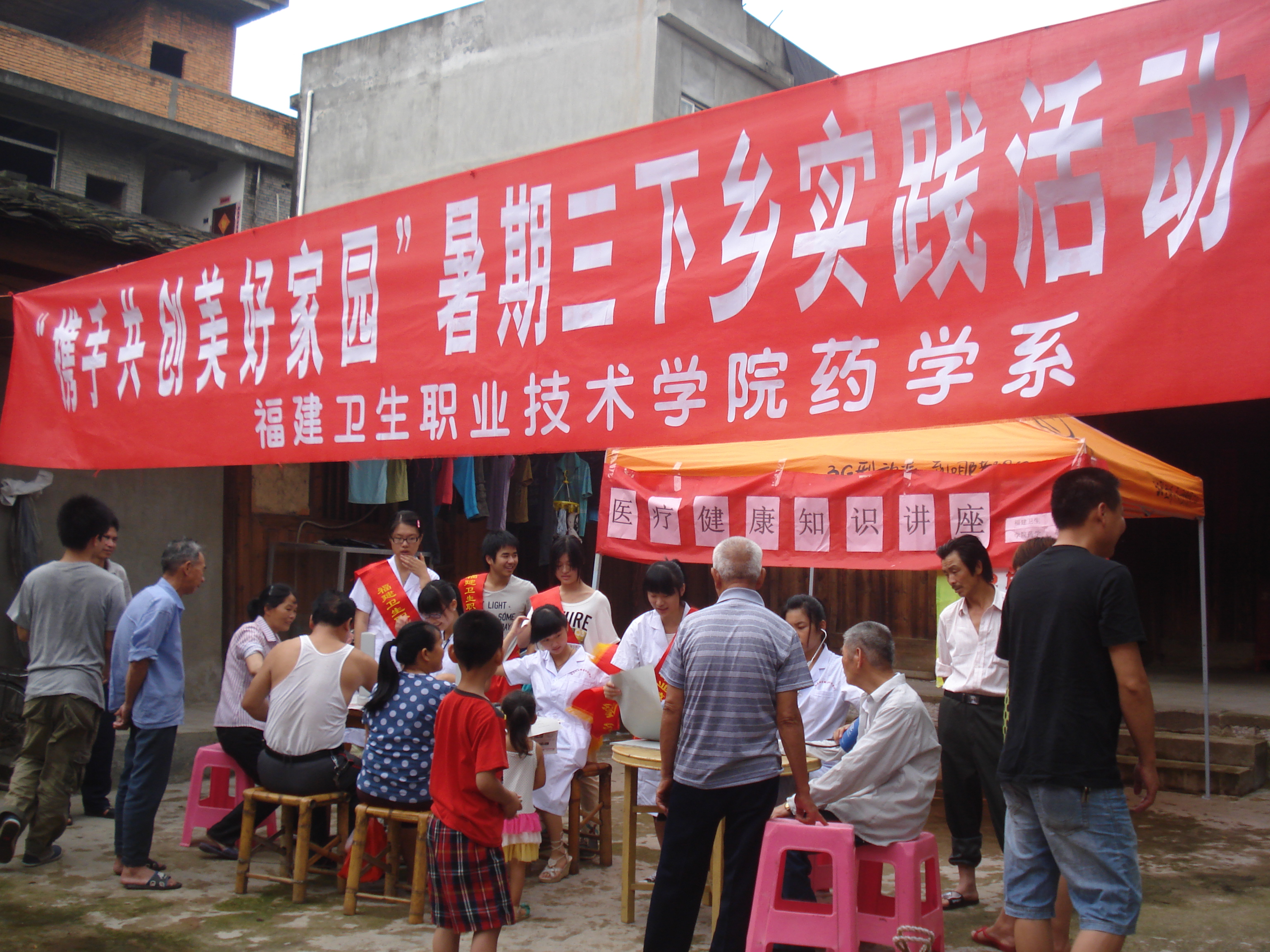 6月23日至24日,药学系暑期“三下乡”社会实践队在系团总支书记王钝锐老师的带领下深入闽侯荆溪镇关口村开展2012年暑期“三下乡”社会实践活动:组织关口村村民进行了医疗用药知识的问卷调查;举办了“医疗健康知识讲座”;为村里的居民讲解日常用药安全知识;开展了健康宣传及体检活动,为200多名村民进行血压测量及健康咨询活动。