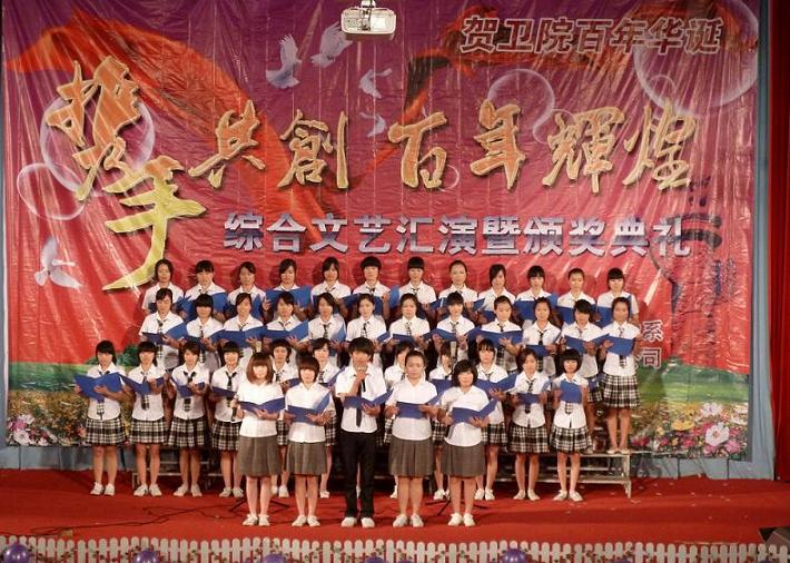 首先,系党总支苏爱华副书记作了热情洋溢的致辞并宣读本次文化艺术节的获奖名单,接着综合文艺汇演在朗诵《望》中拉开了帷幕。本次综合文艺汇演节目丰富多彩,有让人余音绕梁的歌声、婀娜多姿的舞蹈、发人深省的小品、精彩的魔术表演、精湛的武术表演,每个节目都深深的吸引着观众的眼球,诙谐幽默的语言引得观众掌声不断,现场的活跃气氛十分高涨。最后,晚会在我系师生精心准备的“百年笑脸 百份祝福”的VCR中落下了帷幕,表达了我系全体师生对学院百年校庆深深地祝福。