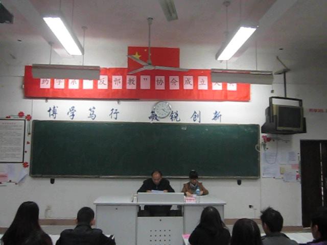 我系于12月13日下午在药学系第一阶梯教室举行“药学系反邪教分会成立大会”,系党总支苏爱华副书记,系行政秘书陈洁老师,系第一党支部叶雅沁老师,系团总支王钝锐书记,系团总支陈炳秀副书记以及系部辅导员出席本次会议。