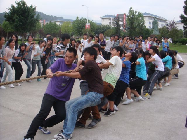 为促进我系11级新生班级之间的交流,提高各班级集体荣誉感,我系于10月11日下午在一号学生公寓楼前举行新生拔河友谊比赛。
