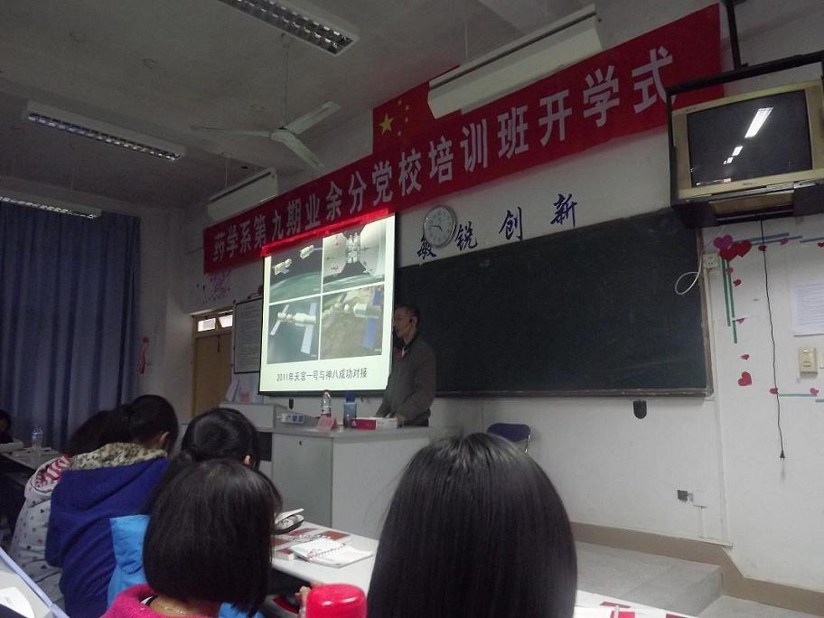 药学系第八期业余分党校第一次培训课于11月22日在我系第一阶梯教室举行,我系党总支邀请院思政教研室胡济林老师为全体学员进行题为“伟大的抉择 盛世的起点——改革开放的回顾与经验总结”的形势讲座。