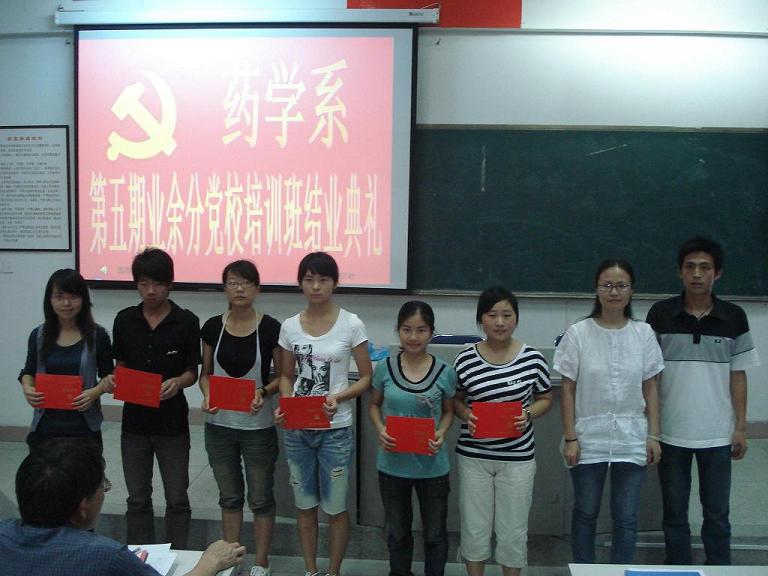 药学系第五期业余分党校结业典礼于6月2日在系部第二阶梯教室召开,系党总支欧春木书记、系秘书艾松军老师、团总支何烜书记、系党总支委员罗兰老师以及本期业余分党校全体学员出席了结业典礼,结业典礼由艾松军老师主持。