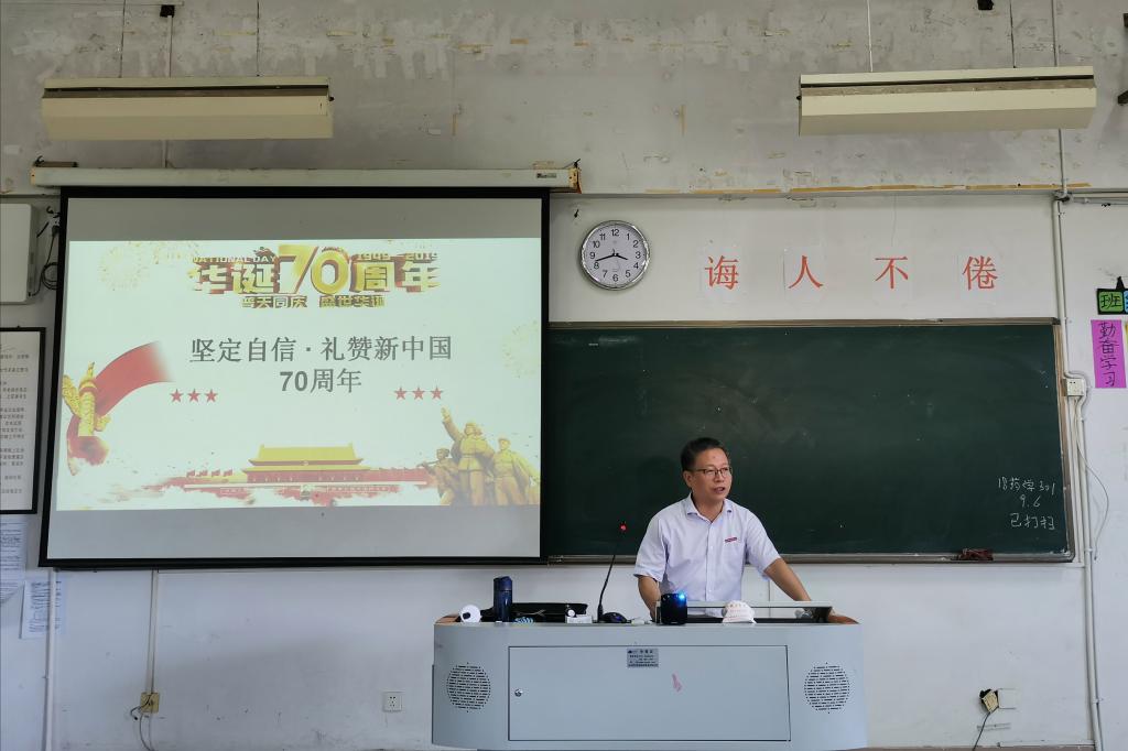 为庆祝新中国成立70周年,进一步增强青少年的获得感、幸福感、安全感,凝聚和激发同学们的爱国热情,2019年9月6日,陈贞健副院长于药二阶以“坚定信念,礼赞中国70周年”为主题,为药学系 2018级学子讲授了一堂生动而精彩的形势与政策课。