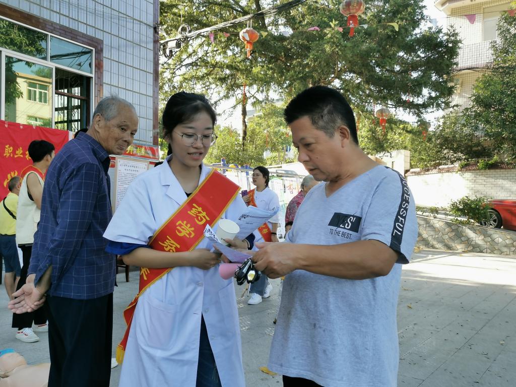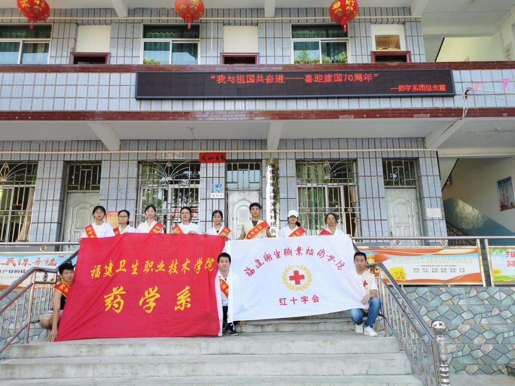 为庆祝中华人民共和国成立70周年,服务百姓、提高居民健康素养,传播健康理念,2019年9月19日,药学系团总支携手院红十字会赴闽侯县关西村展开特别主题团日活动——“我与祖国共奋进”。