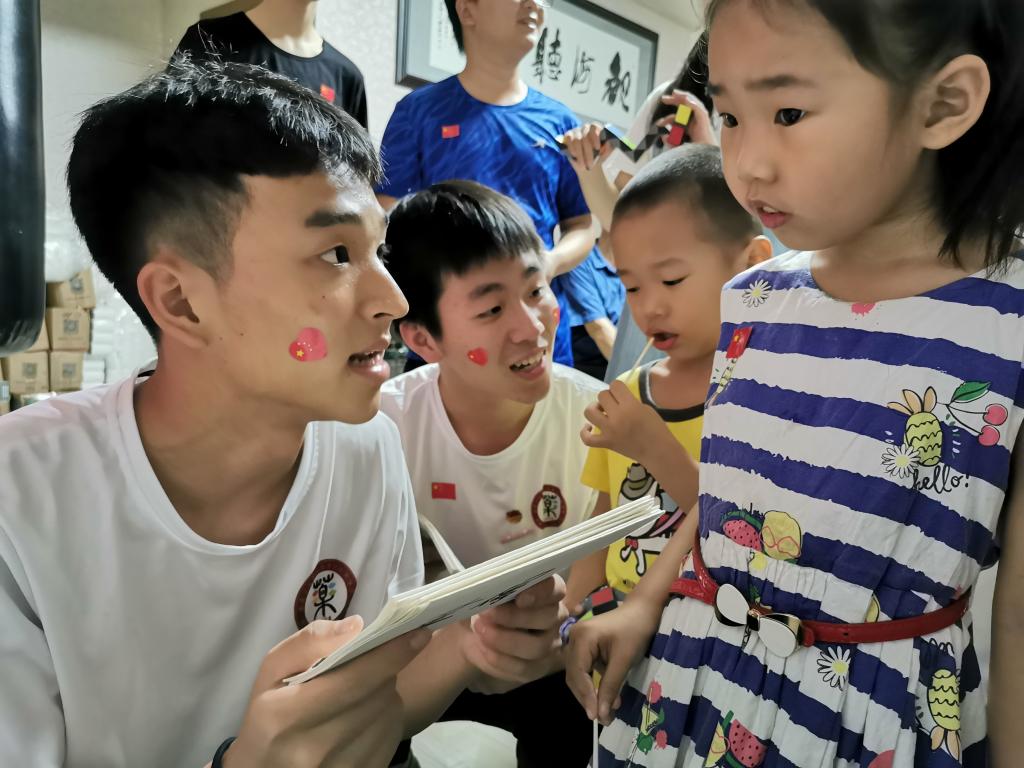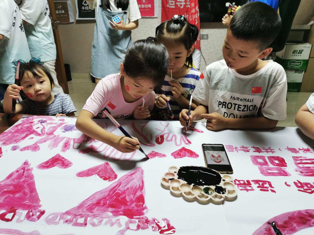 当日早晨,小朋友们早早到达指定地点。我们按照原先制定的计划,有条不紊地进行着活动内容。活动开始志愿者们用带领小朋友们绘画的形式加强孩子们对禁毒防艾的认识和了解,培养他们的安全意识;现如今垃圾分类已经成为热门话题,志愿者们便用自己精心制作的小卡片代替各种垃圾,耐心地跟小朋友们讲解着四类垃圾的分类小诀窍;紧接着由黄潮同学带领孩子们一起合唱《歌唱祖国》。