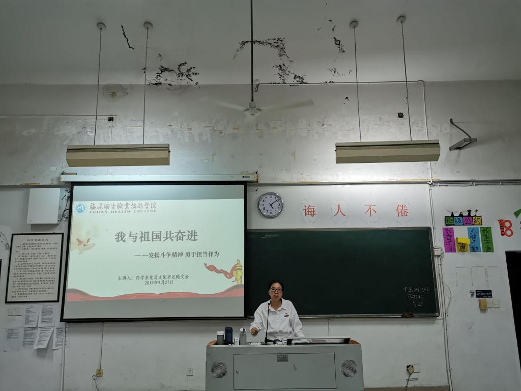 为培养学生干部的责任与担当意识,提高学生干部的政治素养和工作能力,9月27日,药学系党总支副书记赖文金老师在药学系二阶为两委会成员及各班级班团干部90余人讲授“我与祖国共奋进”专题团课。