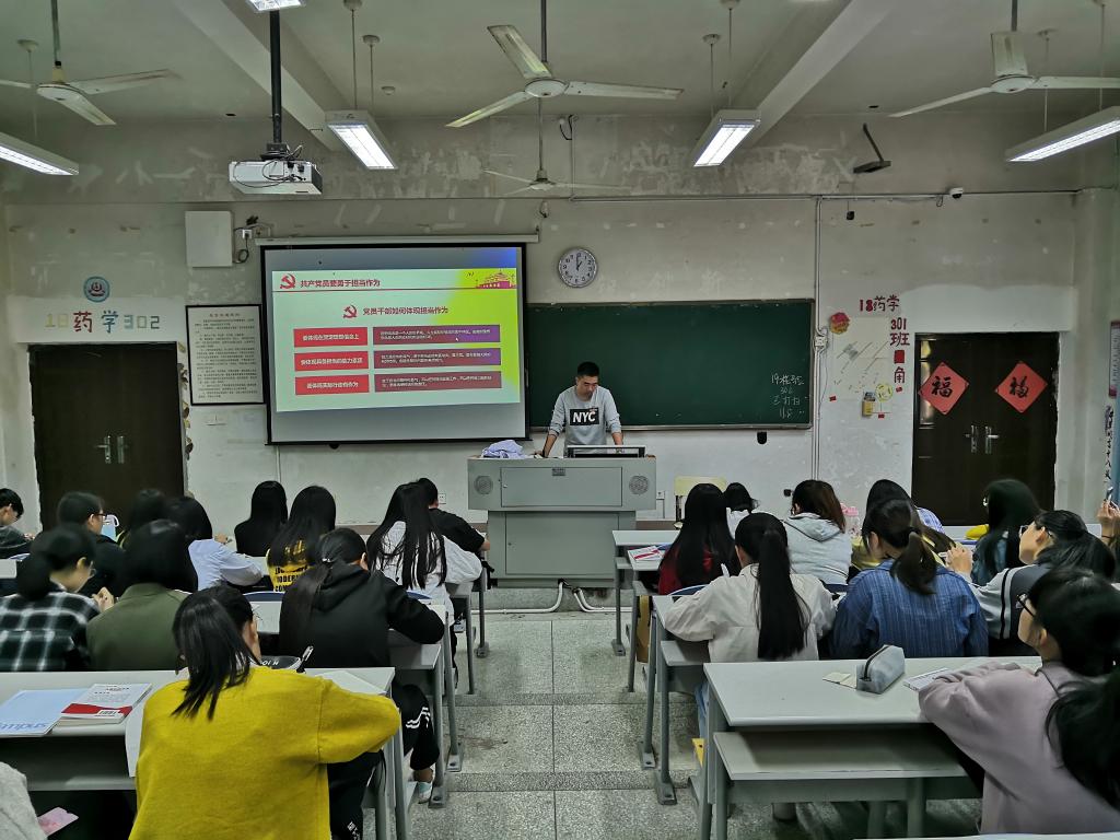 为进一步深入学习党的光辉历史,增强学员们敢于担当主动作为的意识,2019年11月11日,药学系党总支于药一阶开展业余分党校第八讲,本次学习的主题是“敢担当有作为、筑梦新时代”,由药学系学生党支部吴建民老师主讲。
