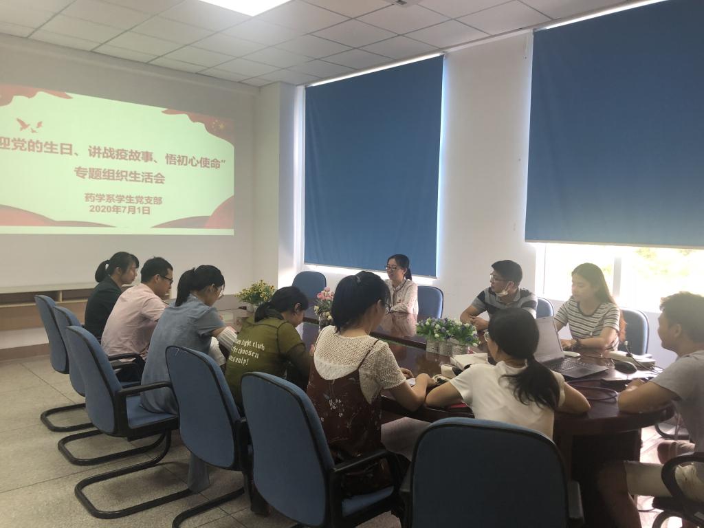 誓言铮铮、初心久久,正逢伟大的中国共产党成立99周年,7月1日,药学系学生党支部召开“迎党的生日、讲战役故事、悟初心使命”专题组织生活会。会上,各党员积极分享身边“战疫”故事,并立足岗位实际查找差距与不足。