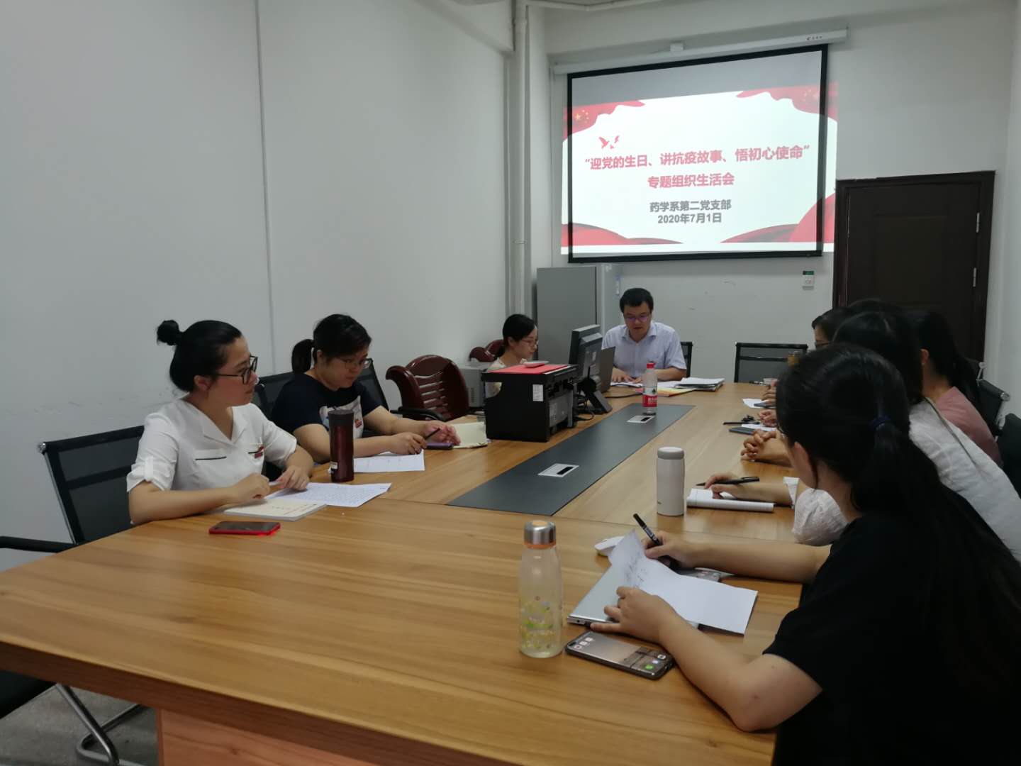 2020年7月1日,为庆祝中国共产党成立99周年,药学系第二党支部召开召开“迎党的生日、讲战役故事、悟初心使命”专题组织生活会,各党员齐聚系部202会议室,分享身边的“抗疫”故事。本次会议由支部书记邓元荣同志主持。