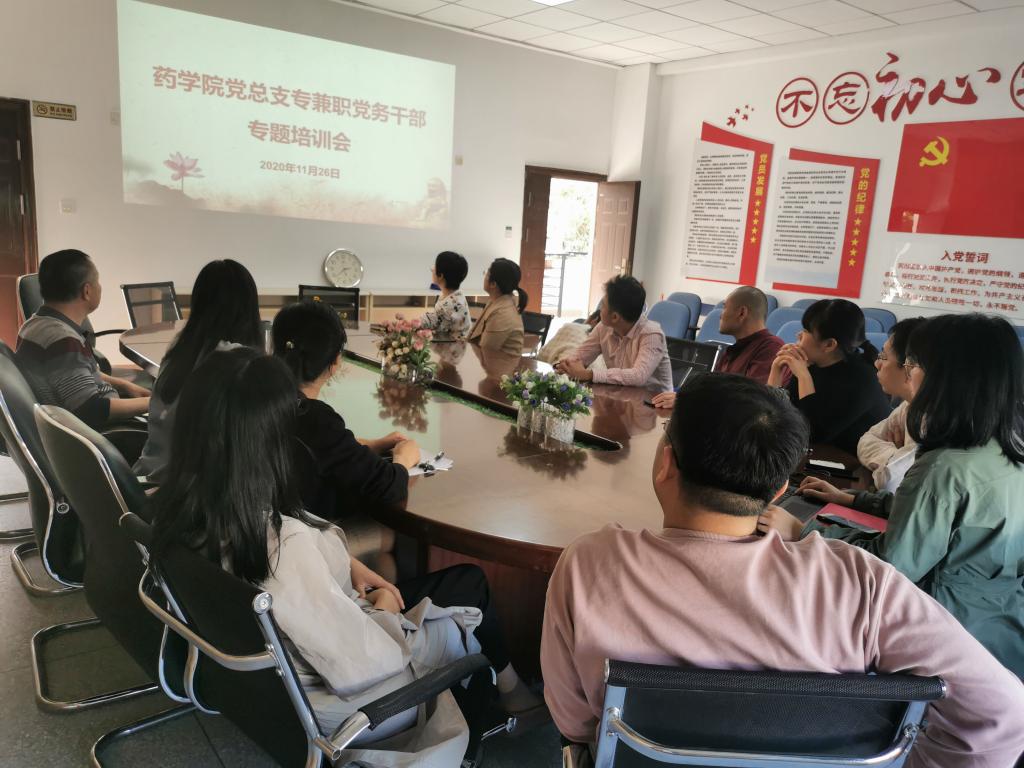 2020年11月27日,药学院党总支组织全体专兼职党务干部在会议室开展专题培训会,集中学习《中国共产党基层组织选举工作条例》。会议由总支书记郑力宏主持。