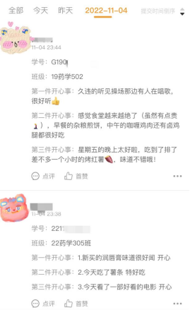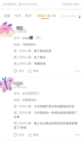 (学生“开心事”打卡内容)