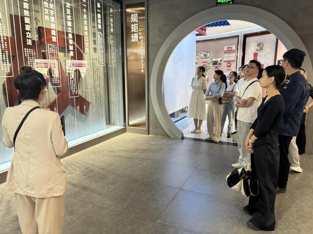 师生党员们跟随讲解员实地参观了序厅、思想厅、案例厅、成果厅,探寻中国共产党纪律建设的伟大足迹,了解近年来反腐倡廉工作成效。接触“酒桌”后卷入腐败旋涡、触碰“赃款”后响起警报被关进“牢笼”、贪污事实暴露落网后写下的“忏悔书”……现场教学活动中的鲜活案例和场景模拟互动体验,既是一次警示教育,又是一次党性教育。