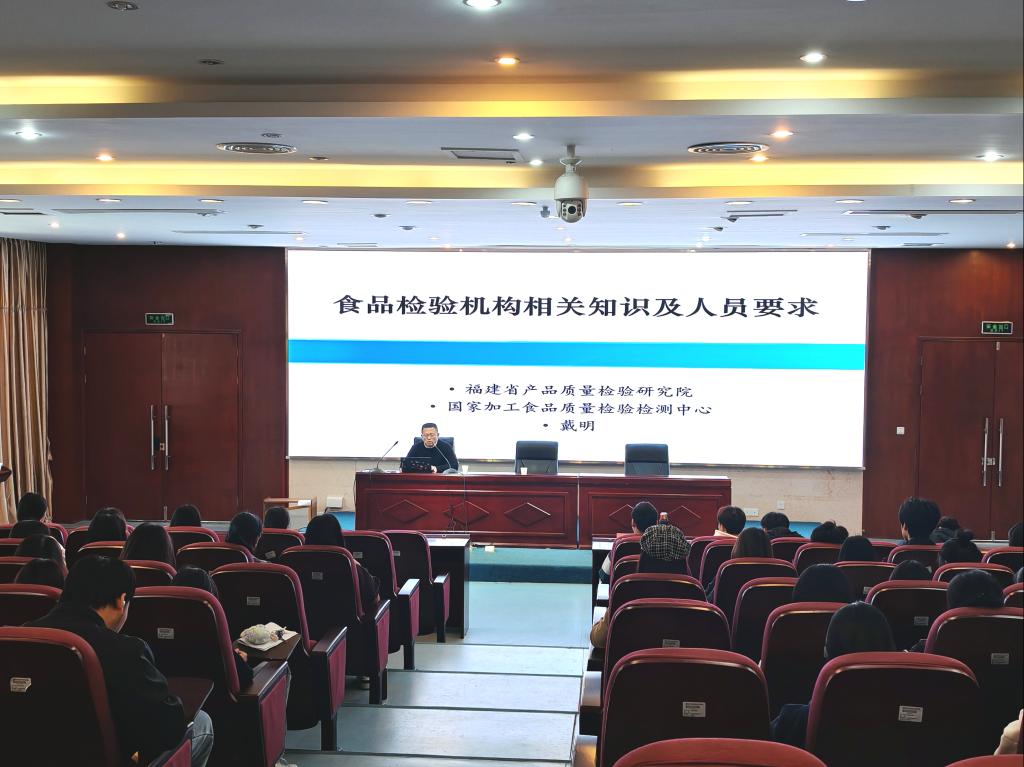 福建省产品质量检验研究院食品检验研究所副所长戴明为药学院师生开展了以“食品检测人员基本职业素养与要求”的专题讲座,介绍了食品检测人员基本职业素养与要求,包括职业道德、职业能力,检验人员需要掌握的法律、法规、规章及规范性文件、标准,应该具备的实验知识与实验技能,同时还介绍目前食品检验机构的发展现状等,让同学们更加深入地认识到食品检验机构的发展现状及其对专业人才的要求。