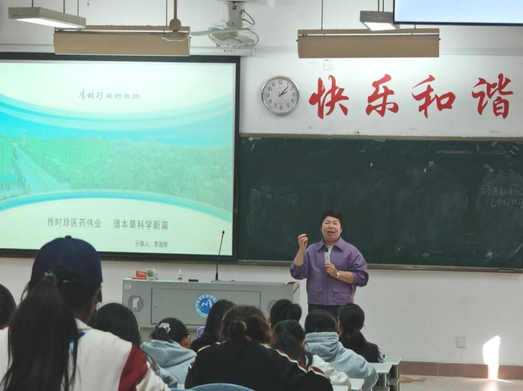 李时珍医药集团KA部李淑琴总监为药学院师生开展“传时珍医药伟业,谱本草科学新篇”的专题讲座。以自己的亲身经历向同学们讲述了自己24年如何从一名基层业务员成长为现在的公司副总,通过自身真实案例,告诉同学们如何认知专业和自我,为学生规划了较为清晰的职业方向。
