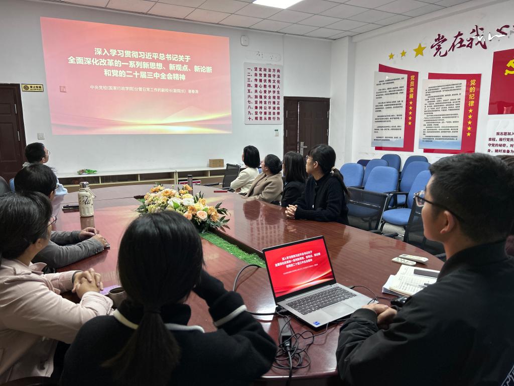为深入学习贯彻党的二十届三中全会精神,提升党员的党性修养和思想觉悟,药学院第二党支部于12月5日下午在药学院会议室开展“深入学习贯彻党的二十届三中全会精神专题辅导系列课程”集中学习活动。此次活动由党支部书记刘丹丹主持,全体教师党员参加会议。