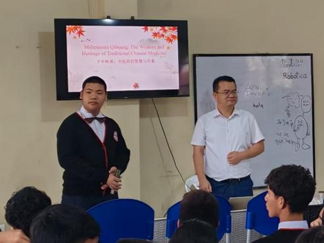 仪式后,中方教师分享中医养生知识与福建特色文化,双方互赠纪念品,进一步深化中厄民间文化交融。思邈维华国际学校学生用中文演唱《歌唱祖国》,并演绎新疆舞蹈,生动展现对中国文化的认同与喜爱。